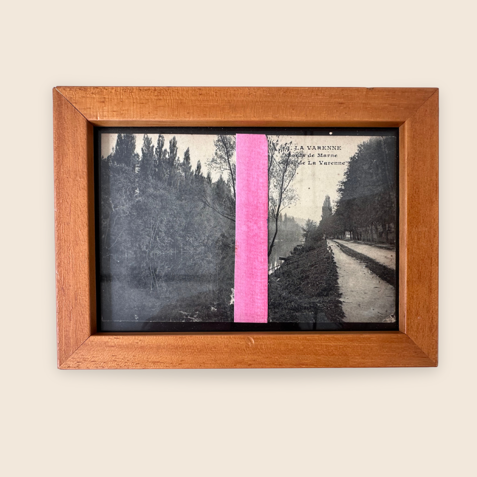 Oude ansichtkaart van Varenne tot mini kunstwerkje verheven met tweedehands lijstje. Het lijstje kan dus gebruiksporen bevatten.